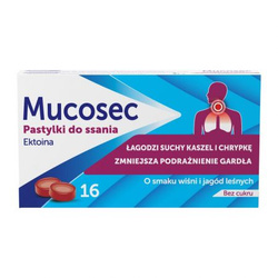 ( ilość produktów: 13 )Mucosec, pastylki do ssania z ektoiną, smak wiśni i jagód leśnych, 16 sztuk